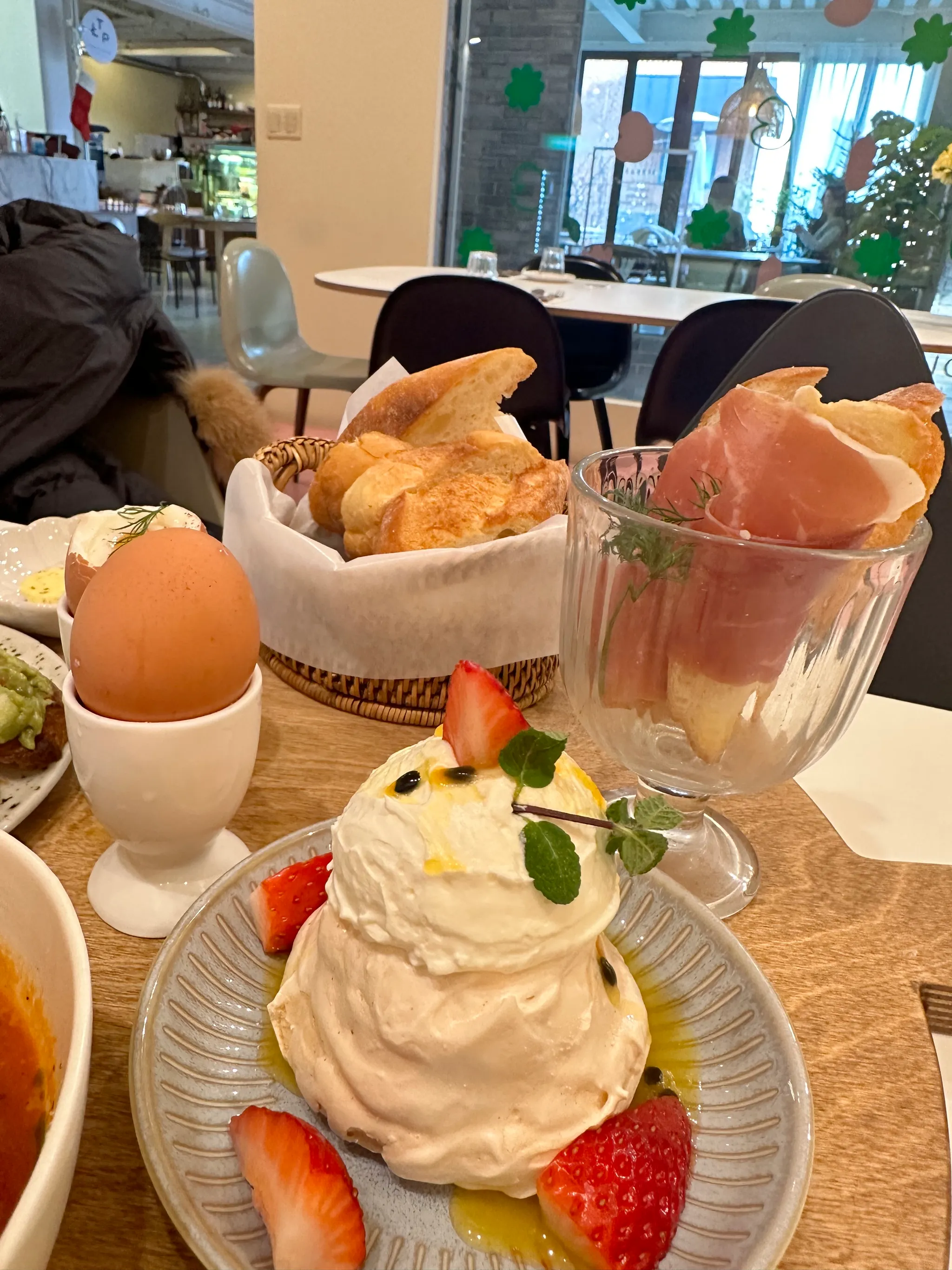 파블로바는 구운 머랭위에 생크림과 과일을 올려 먹는 디저트다. 한남동의 파블로바 맛집이 휴무라 못가서 슬퍼했는데 마침 시그니처 브런치 세트 안에 포함이 되어 있어 무사히 맛볼 수 있었다. 달콤한 머랭과 생크림 위에 화룡점정으로 상큼한 패션 푸르츠 잼?이 올라가 있다. 굳이 브런치 세트를 먹지 않더라도 파블로바는 한 번 드셔보고 오기를 권한다.