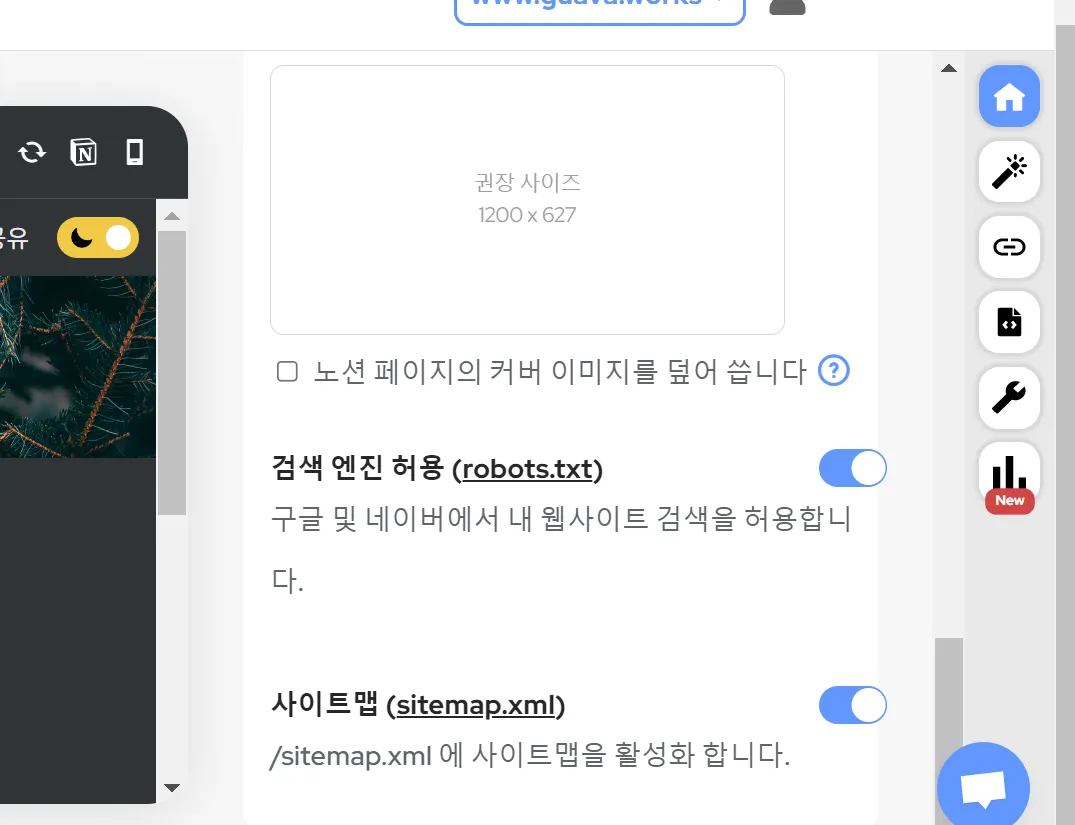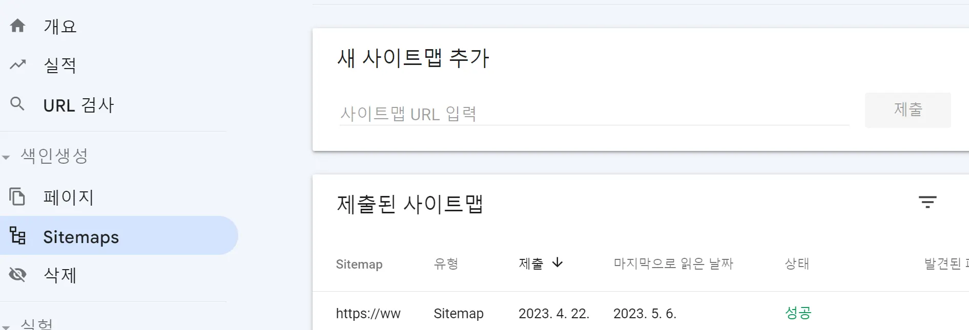 그리고 사이트맵을 제출하고 로봇을 허용해 줄 차례다. 우피 콘솔에서 홈 버튼을 누른 다음에 검색 엔진 허용과 사이트맵 활성화 버튼을 누르기만 하면 된다. 그리고 구글 사이트 맵 페이지에서 내 블로그 주소/sitemap.xml 을 제출하면 된다.