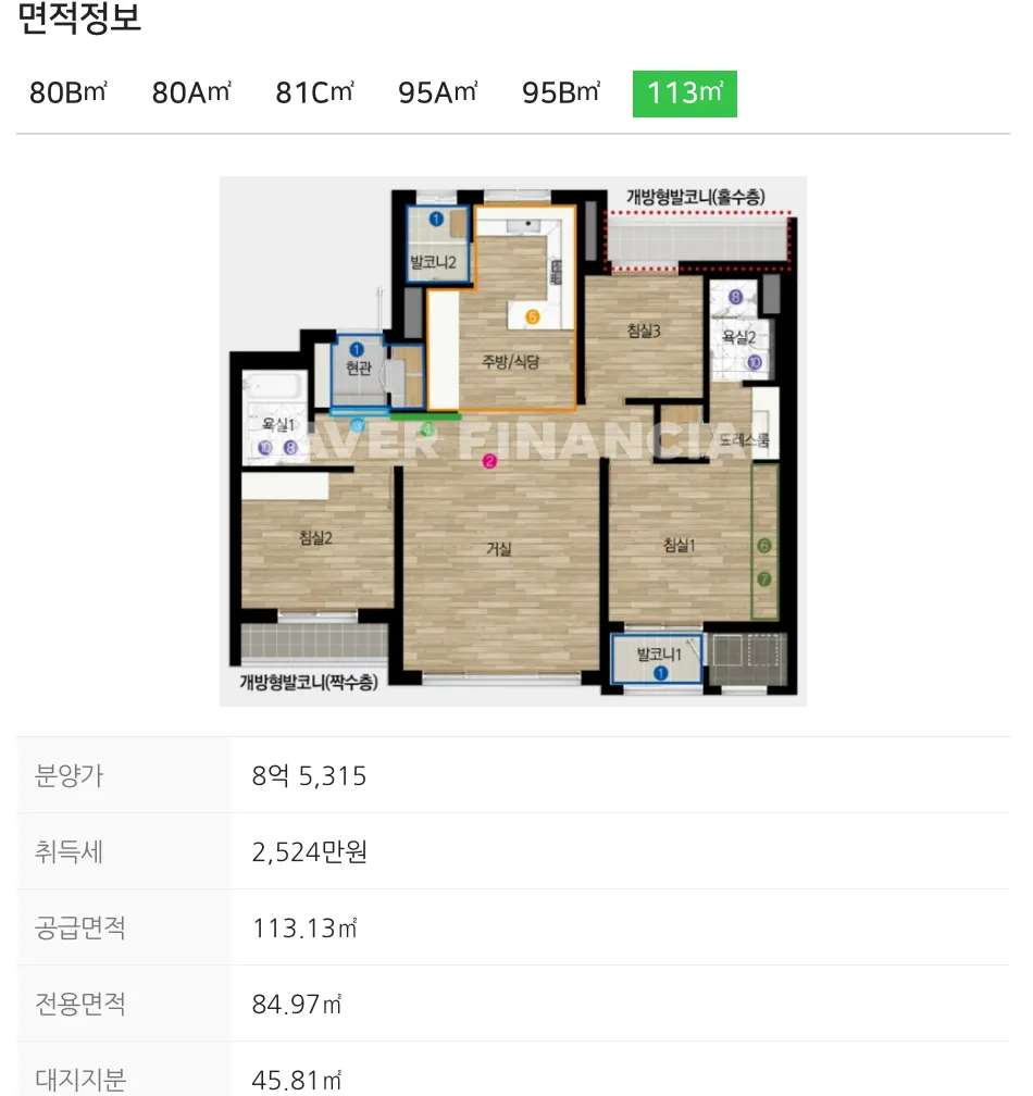 침실2와 침실3을 터서 미닫이 문을 달아놓고 하나의 방처럼 쓰기도 하고 두개의 방으로 분리해 쓸 수 있었다. 주방 거실 공간 확보를 위해 방이 작아지는 추세라, 방 3개가 굳이 필요 없는 사람이라면 선택할 수도 있을 것 같다. 아니면 아이방으로 만들어주고 미닫이로 분리를 해서 쓰게 하던가. 그렇지만 판상형 3베이 80A를 넣는게 당연한 선택같다.