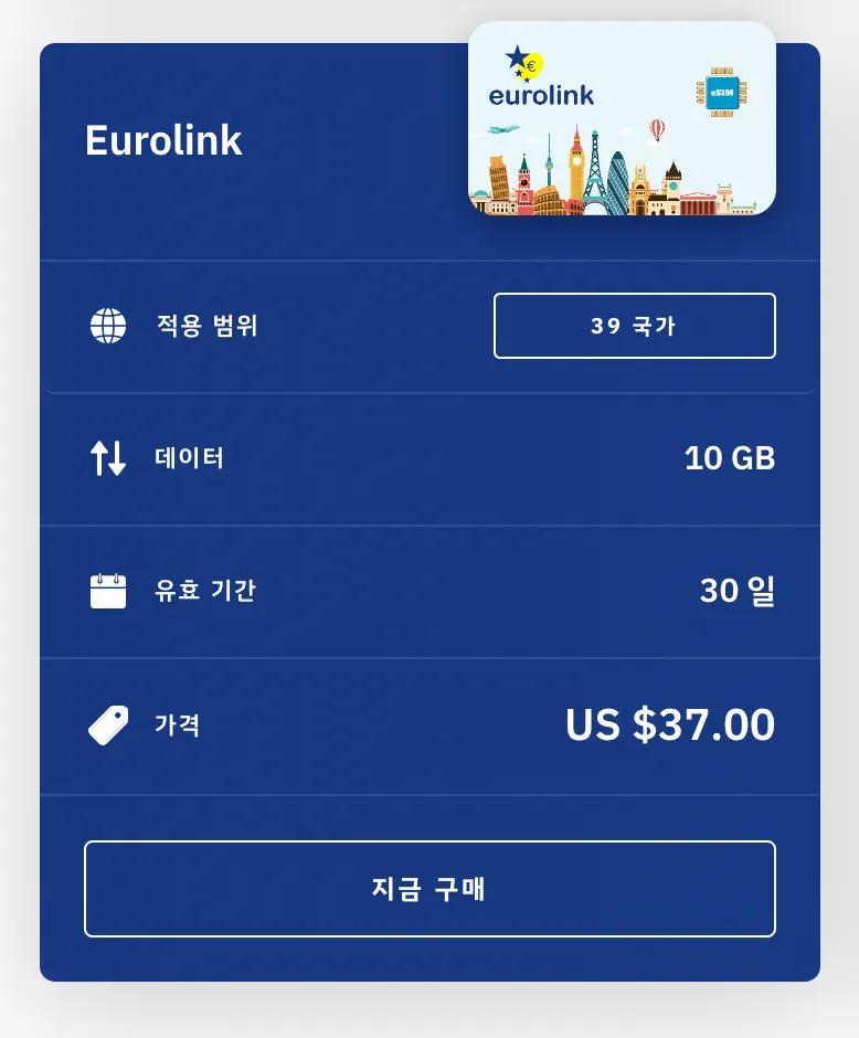 튀르키예에서는 이렇게 이심을 사용하고 유럽에서는 통합 유심을 사용했다. 현지 전화번호가 필요한 상황이 생길까봐, 이심이 아닌 유심을 사용하였다. 30일간 10GB에 유럽 내 통화 문자 무제한 플랜이었다. 한국에서 미리 구매하여 2만원 정도였다. 하지만 에어알로 사이트에서 확인하면 10기가 30일 플랜은 37$로 유심보다 훨씬 비쌌다. 지역 플랜은 이심보다 실물 유심이 더 저렴한 경우가 있는 것 같으니 한국에서 가격비교를 꼭 하고 가자.