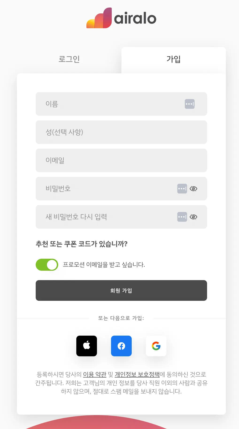 에어알로 이심을 구매할때 할인 받는 방법을 소개하겠다. 대부분의 할인은 신규 가입 고객에 지원된다. 쿠폰 코드를 적용하기 위해서는 추천 또는 쿠폰 코드가 있습니까? 라는 문장을 눌러야 한다.