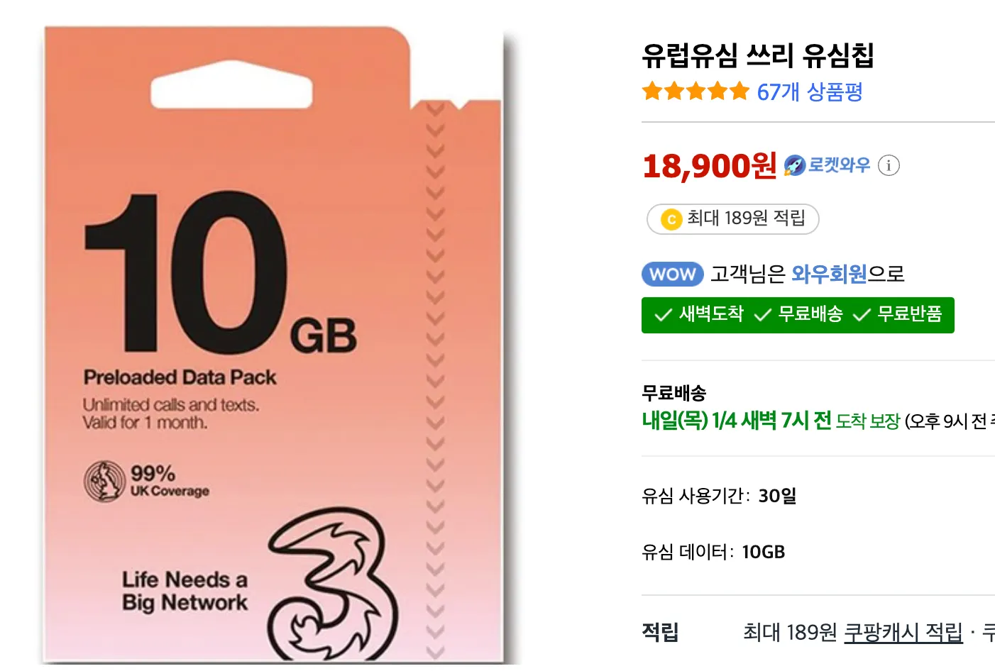 또 가끔 국가별로 세일도 하니 여행가기전 미리 확인해두면 좋을 것 같다. 사용일은 이심 활성화일로부터 계산되기 때문에 미리 구매해두었다가 사용하도록 하자.