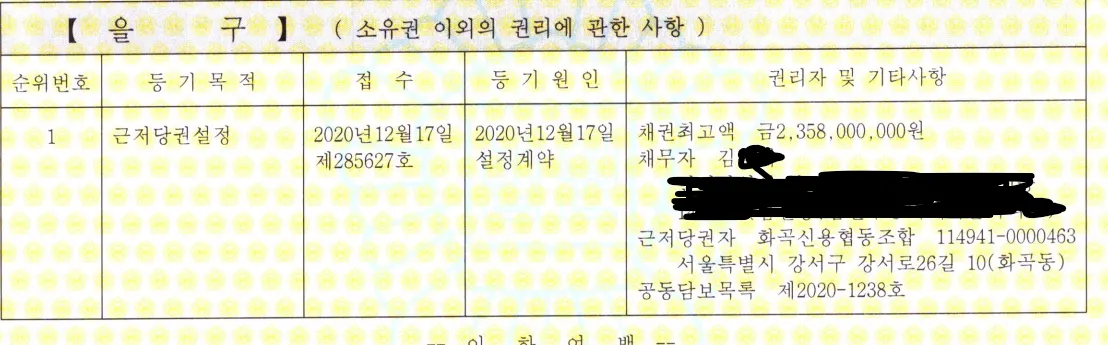 계약금을 넣고 돌아와 혹시나 몰라 등기부등본을 떼보게 된다.